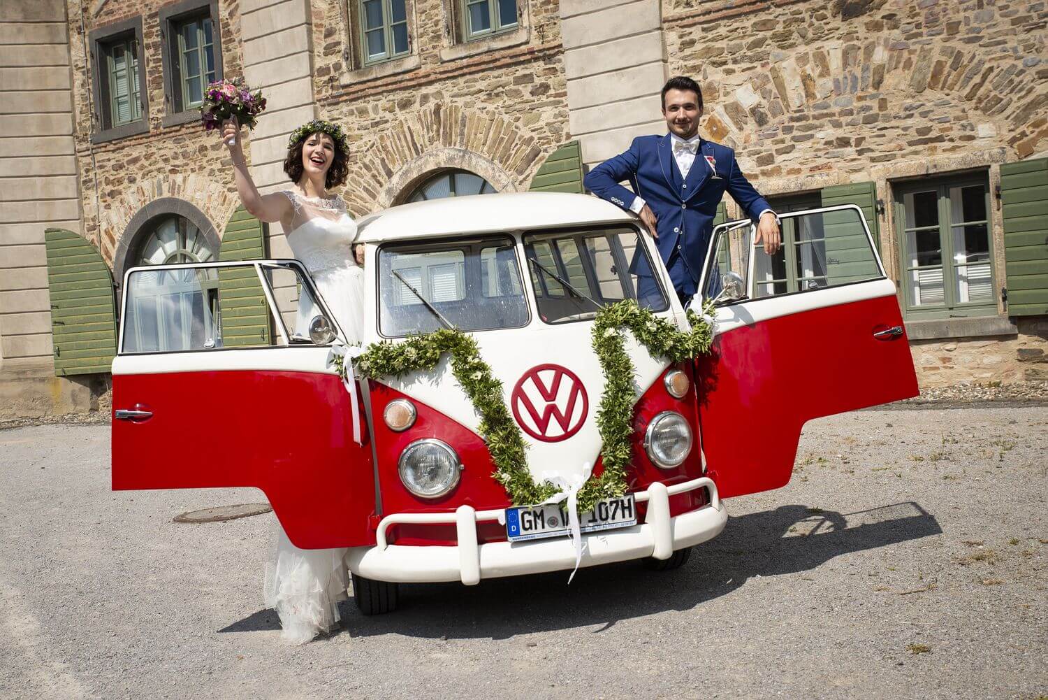 Unser Hochzeitschauffeur holt Sie gerne zu Hause ab und chauffiert Sie zum Ort der Trauung, danach zum Veranstaltungsort oder wo auch immer Sie hin möchten. Neben dem Hochzeitspaar macht sich der Bulli auch ideal als Fotomotiv. Hier sind der Phantasie des Fotografen keine Grenzen gesetzt. Der Bulli ist einfach ein stilvolles Vintage Hochzeitsmotiv.