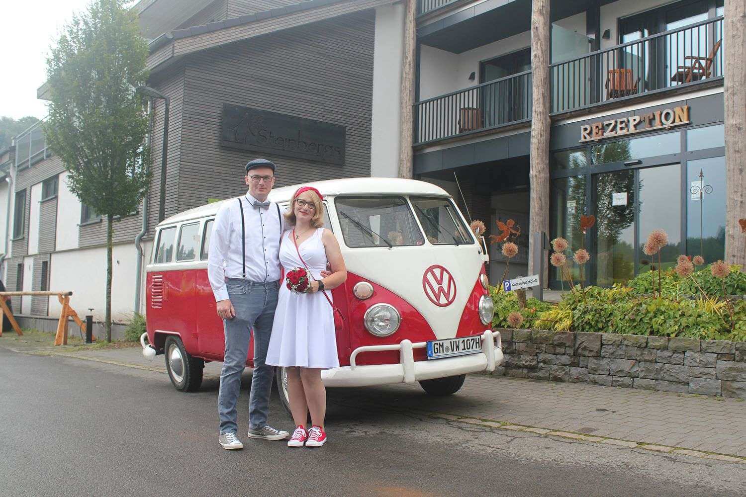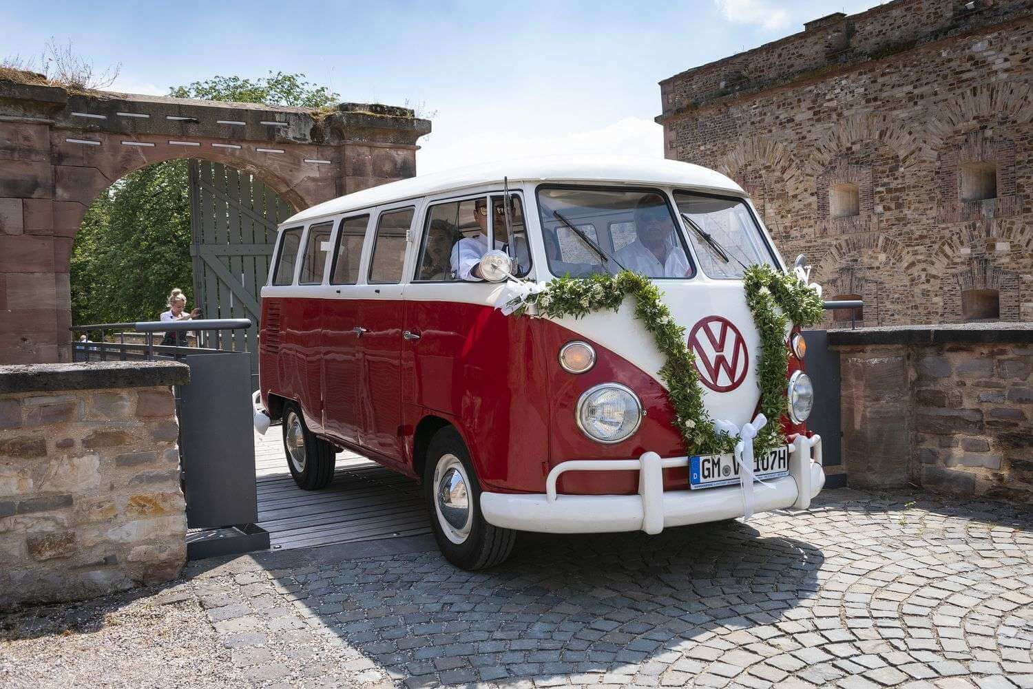 Beim Betreten unseres Bullis erwartet Sie ein Sektempfang; ein stimmungsvoller Auftakt zur bevorstehender Trauung und Hochzeitsfeier.